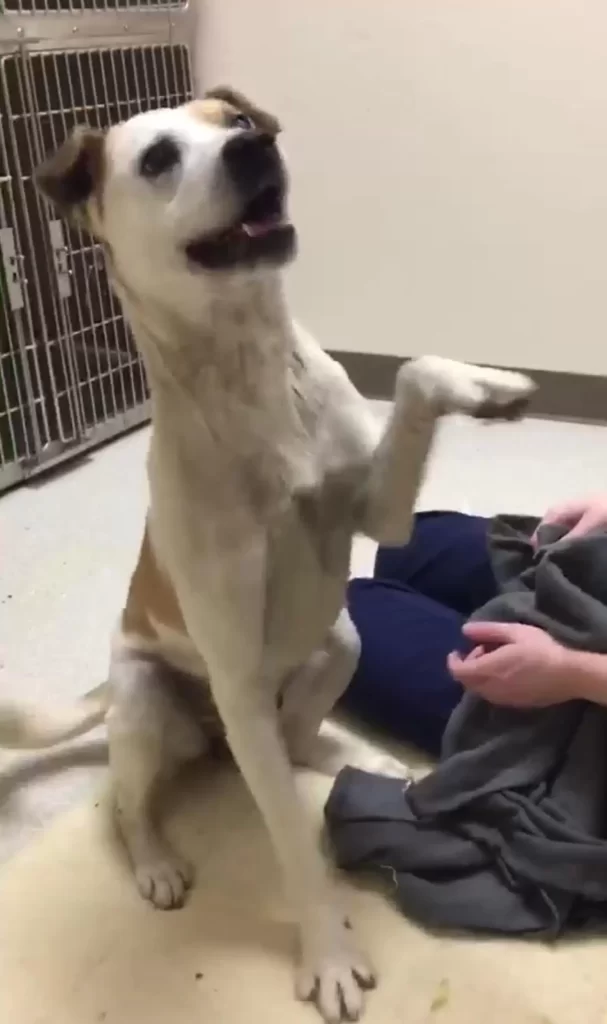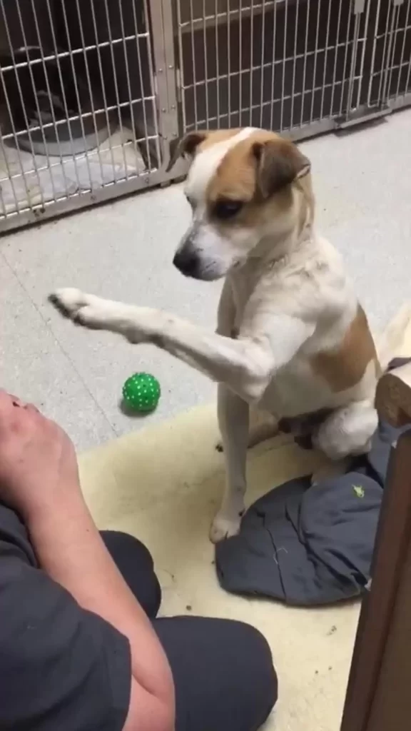 At first, he stayed guarded, moving slowly and carefully around the staff. But as the days passed, he began to trust. He connected deeply with one gentle handler, lifting his paw as if asking for reassurance.