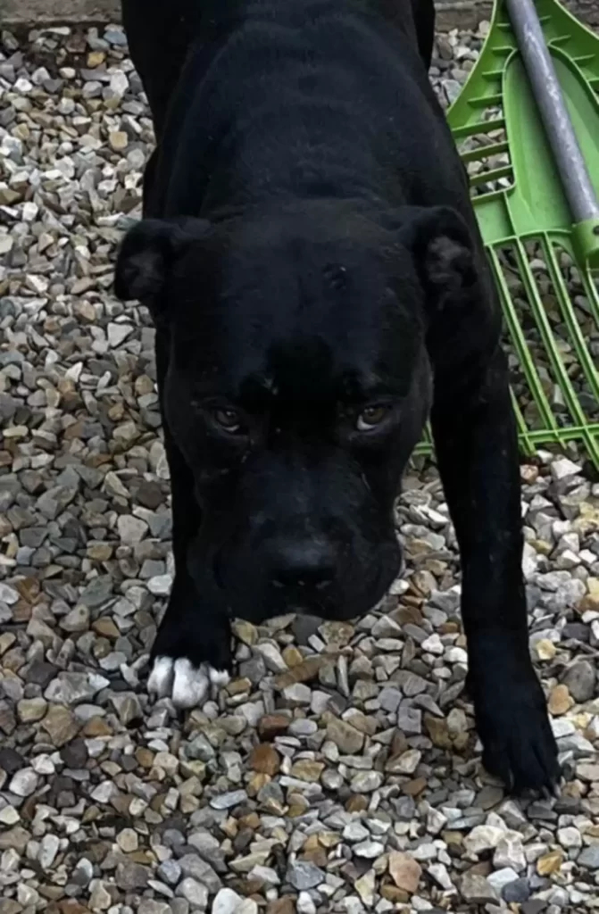 Out stepped a black pit bull with eyes full of confusion and hope.