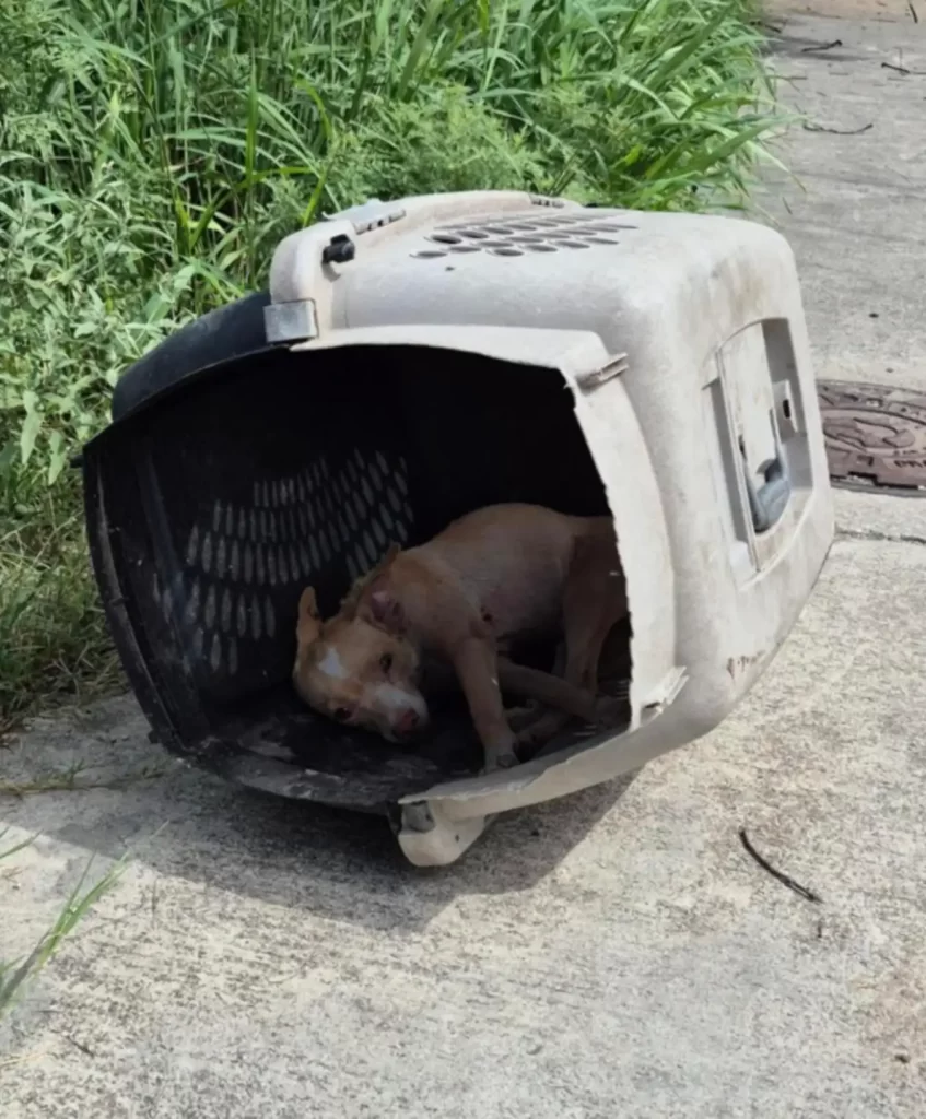 Dog Left In Crate On Scorching Sidewalk Was Too Weak To Cry For Help