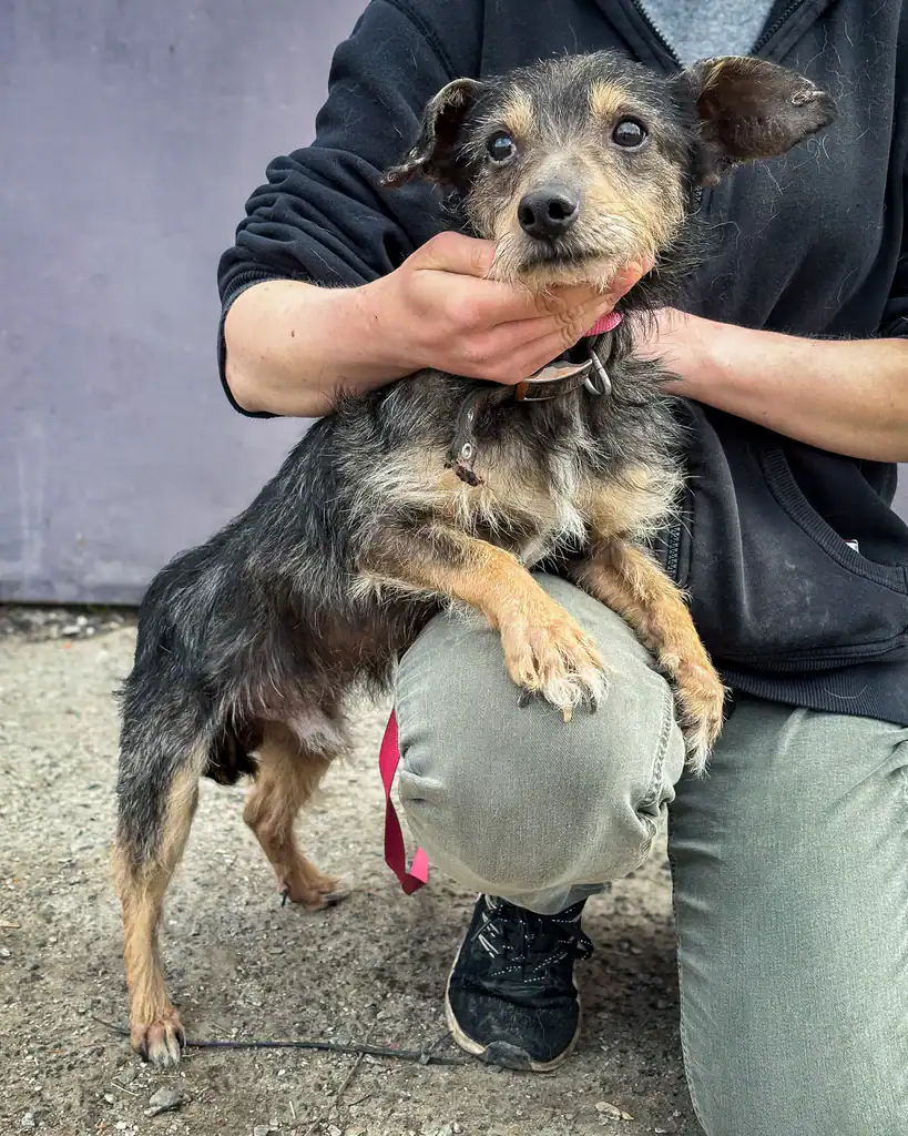 Sema was a small dog, trembling so hard his whole body shook.