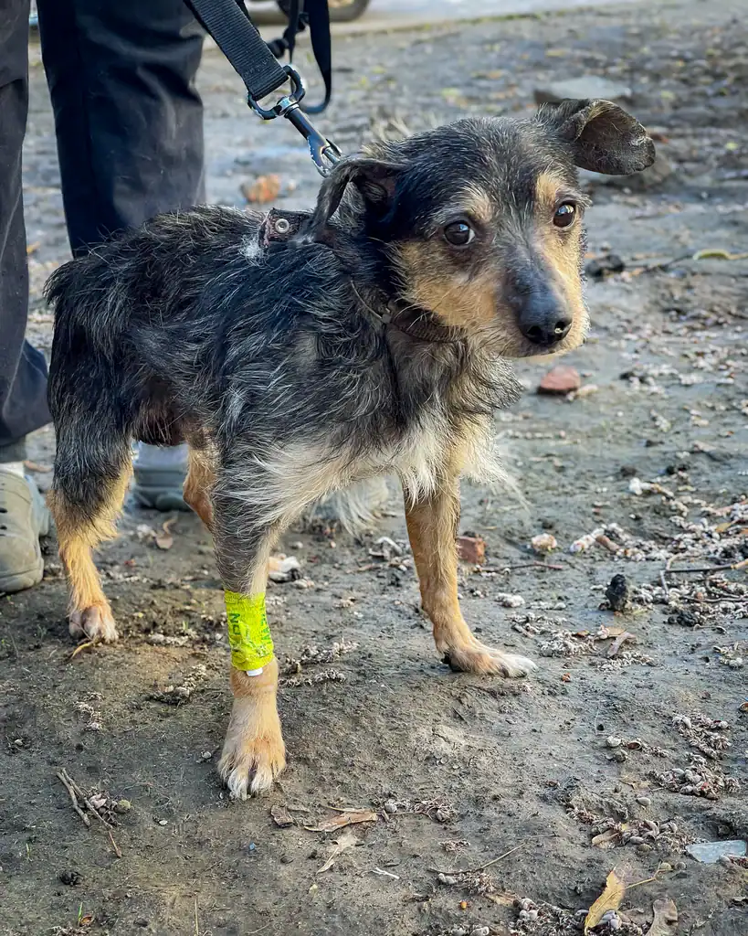 In one bombed village, a tiny dog was still alive, but barely holding on.