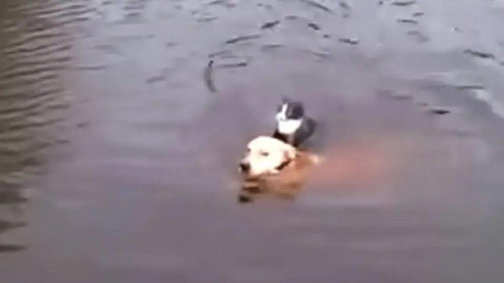 We have seen countless movies, cartoons, and jokes about their rivalry, but when it mattered most, this dog didn’t think twice.