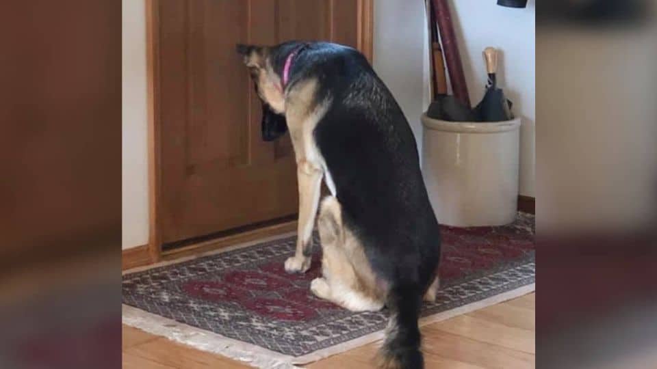 Hours passed. The house was silent except for the sound of her slow breathing. Katie’s mother took a photo — the big shepherd sitting faithfully by the door, waiting for the man she loved — and sent it to her daughter.