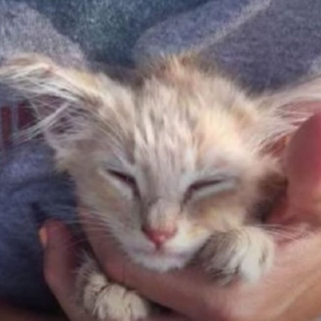 Without a second thought, the passerby scooped up the fragile kitten and rushed her out of the scorching sun.