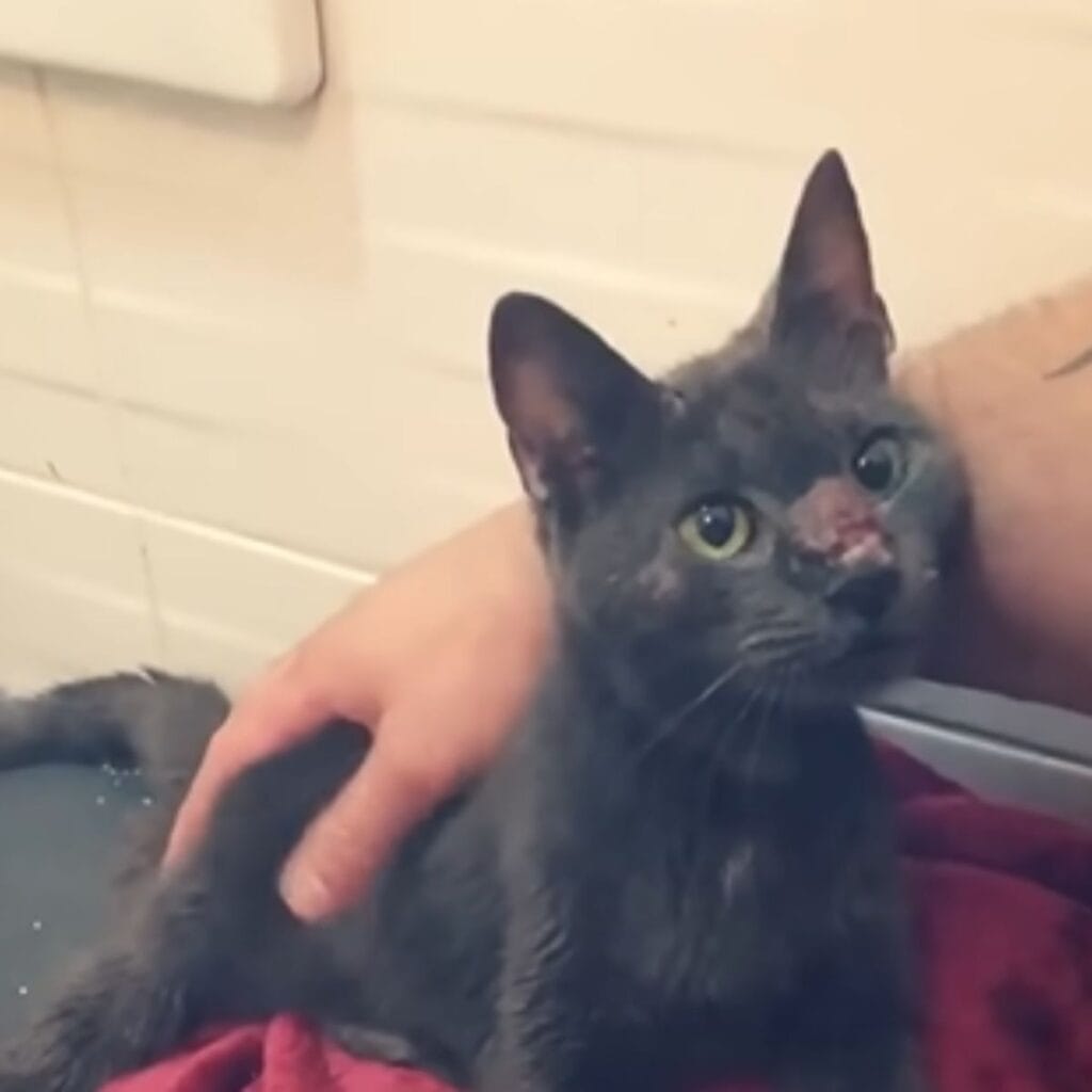 She was dangerously thin, her fur dull and dirty, and her nose swollen with painful ulcers.