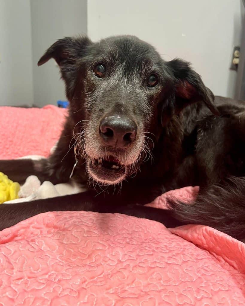 A fifteen year old dog abandoned too late.