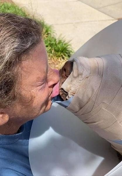 Despite his scars, he licked faces.