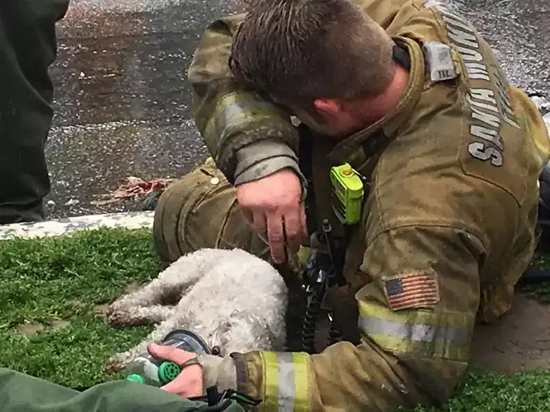 Not everyone would have stayed calm with flames behind them and a lifeless pup in their hands.