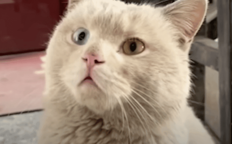 Outside stood a beautiful stray cat, as white as fresh snow and looking like she’d been through a lot.