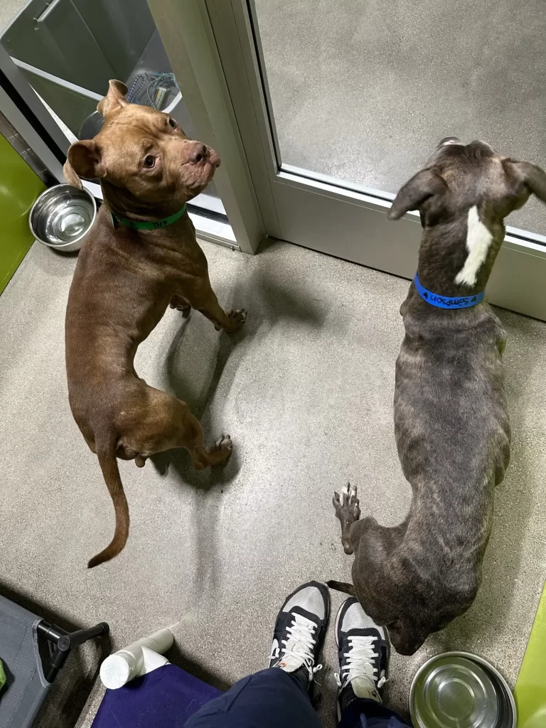 The staff fell in love with them almost instantly. Workers took them on walks, played fetch in the yard, and offered them a warm bed each night.