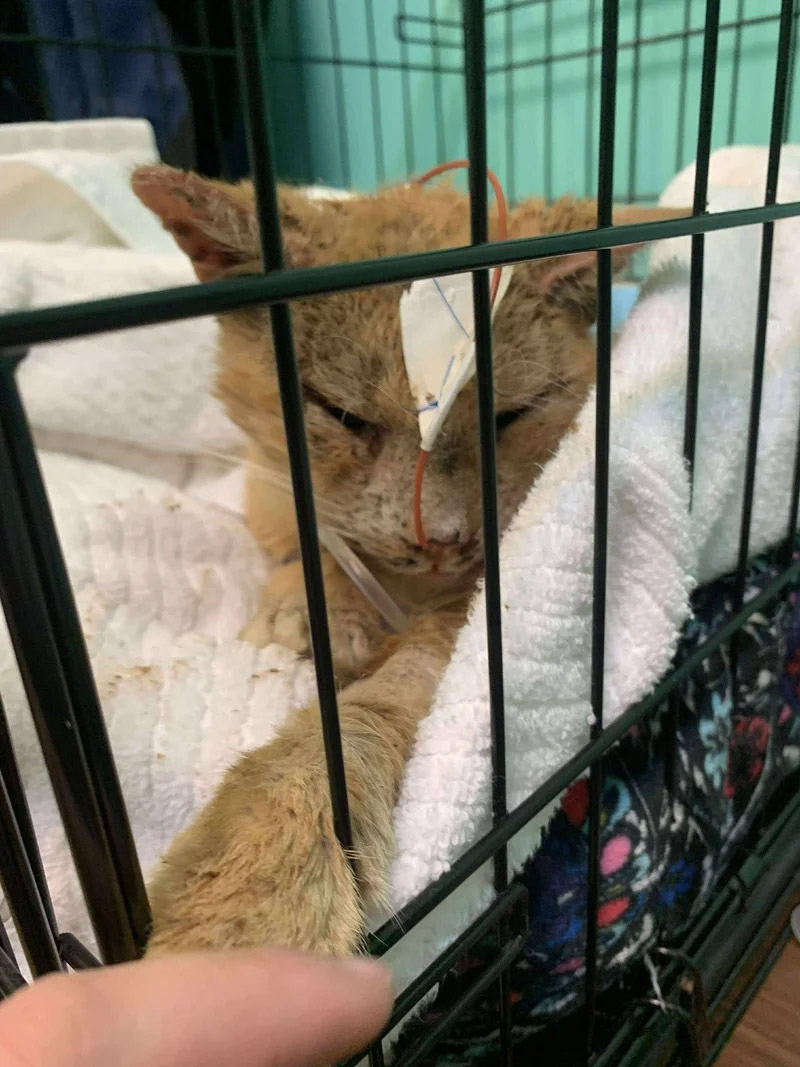 A Good Samaritan noticed that the cat wasn’t running away. He wasn’t even lifting his head. That alone was enough to know something was wrong. When they approached, Cicero didn’t resist. He didn’t cry out. He simply looked up, congested and exhausted, as if all his energy was being used just to stay present.