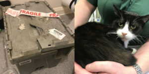 When she attempted to move the box, she immediately discovered it was moving. She looked inside the package out of concern and discovered a tied-up plastic rubbish bag. She pulled open the bag in a hurry and was startled to see a scared and perplexed cat inside.