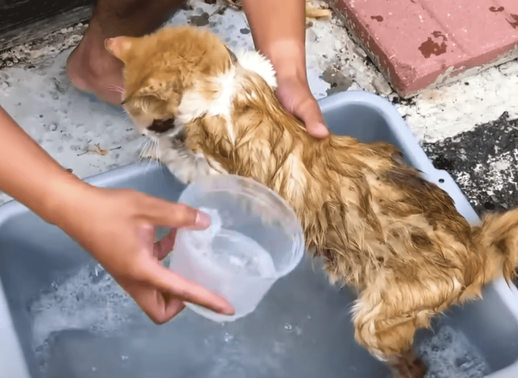 Following the sound, he discovered a frail, emaciated cat in his yard.