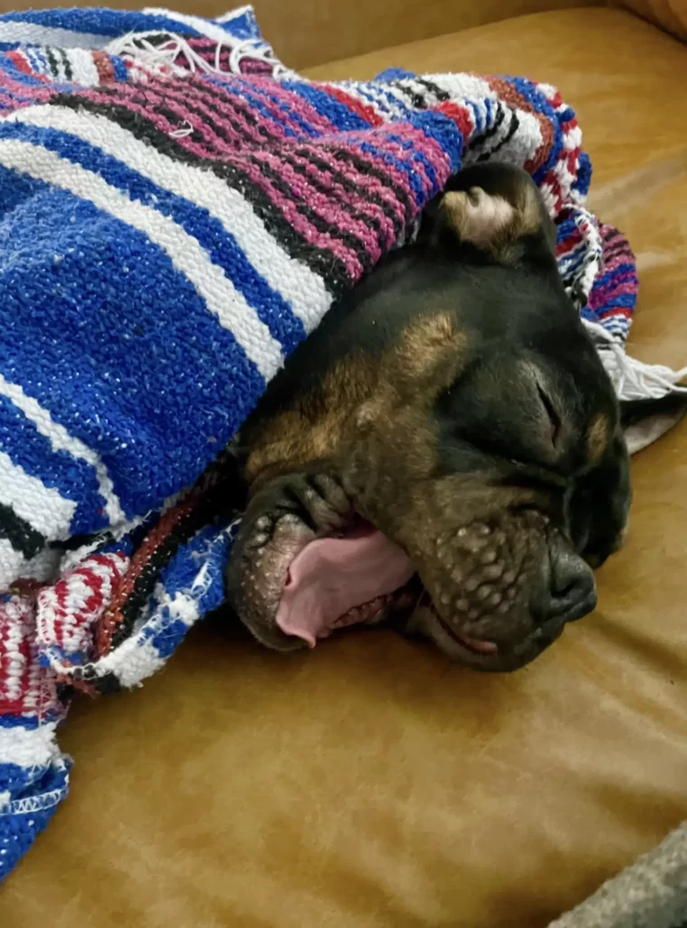 Katie often caught herself staring at Blair while they rested on the couch, unable to believe this was the same little dog found half-frozen just weeks ago.