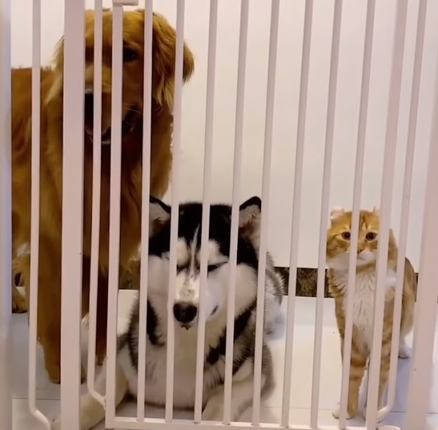 While the two cats take exceptional care of their newborn, the family’s two golden retrievers and a Husky also shower their affection on the tiny newcomer. Their patience and watchful eyes convey a sense of pride and guardianship, as if they understand the importance of their role in this growing family.