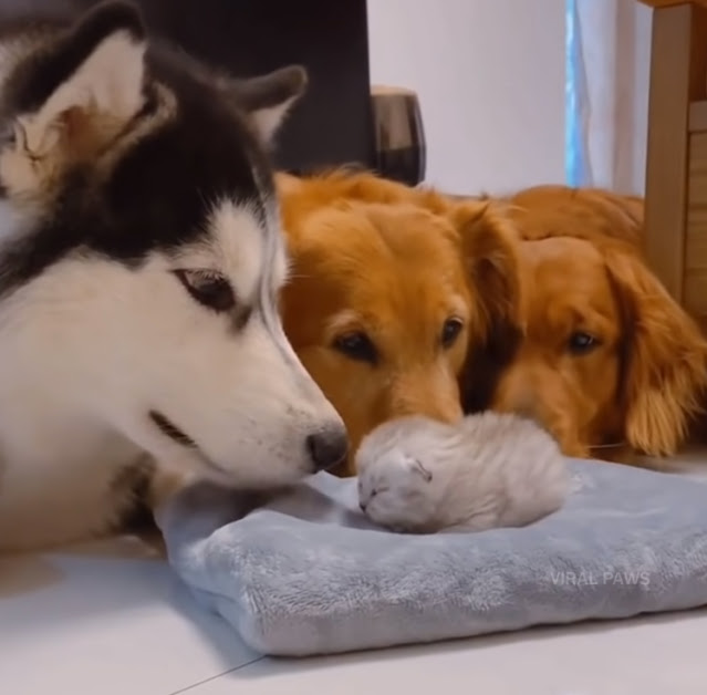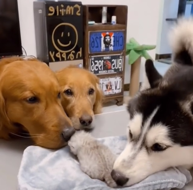 As the days pass and the little kitten grows, both dogs and cats alike continue to play their parts as loving caretakers. They stand by her side, offering protection and guidance as she explores the world around her. It’s undeniable that this kitten is one of the luckiest in the world, embraced by the warmth and adoration of this unique and endearing family.