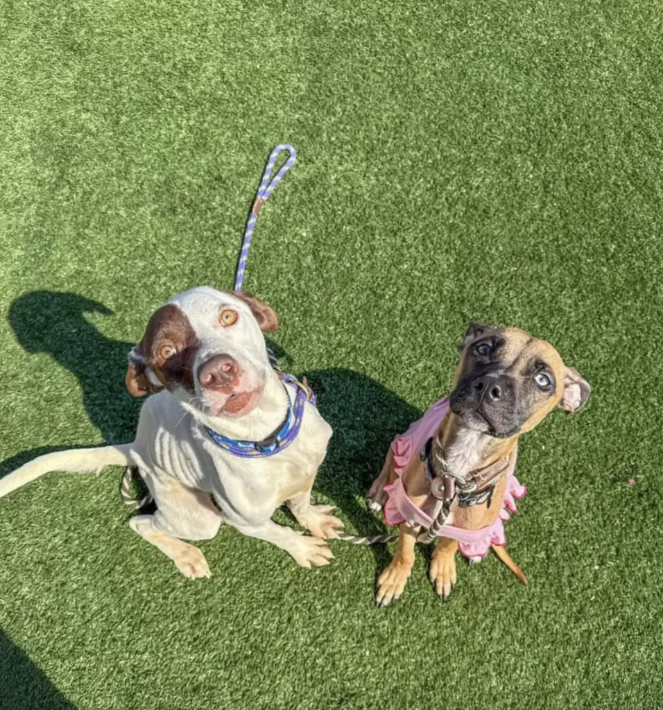 As Levey’s strength returned, so did her playful nature. Her rescuers soon introduced her to another survivor — a cheerful dog named Alaric, who had also battled starvation before being saved by the same shelter.