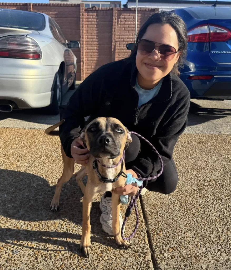 Today, she’s no longer the frail dog tied to a fence. Levey now curls up on soft blankets, surrounded by people who adore her.