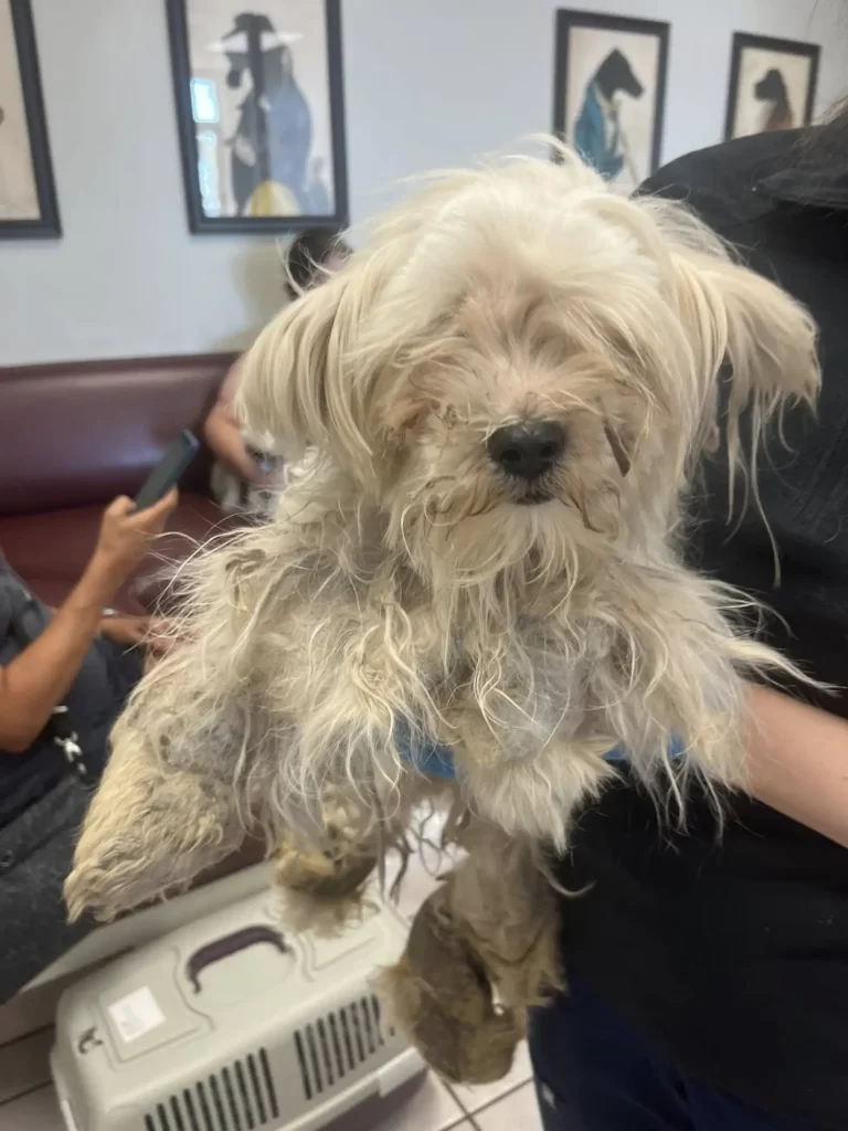 At the clinic, veterinarians quickly began the long process of evaluating her condition. The mats were so severe that they tugged at her skin and caused sores.