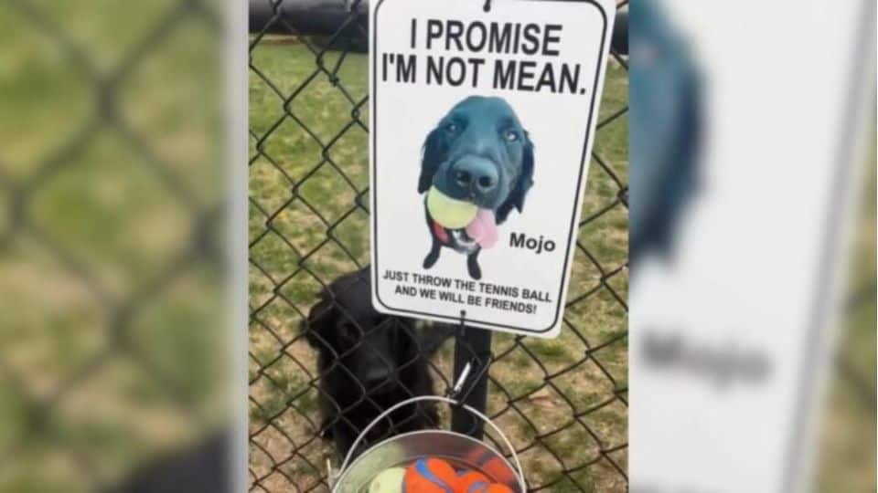 So, she filled a bucket with tennis balls and placed it by the fence. Beside it, she hung a sign that read: “I promise I’m not mean. Throw the tennis ball and we will be friends.”