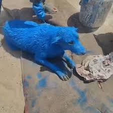 It was a dog, covered in blue industrial paint, stiff as stone, and barely clinging to life.