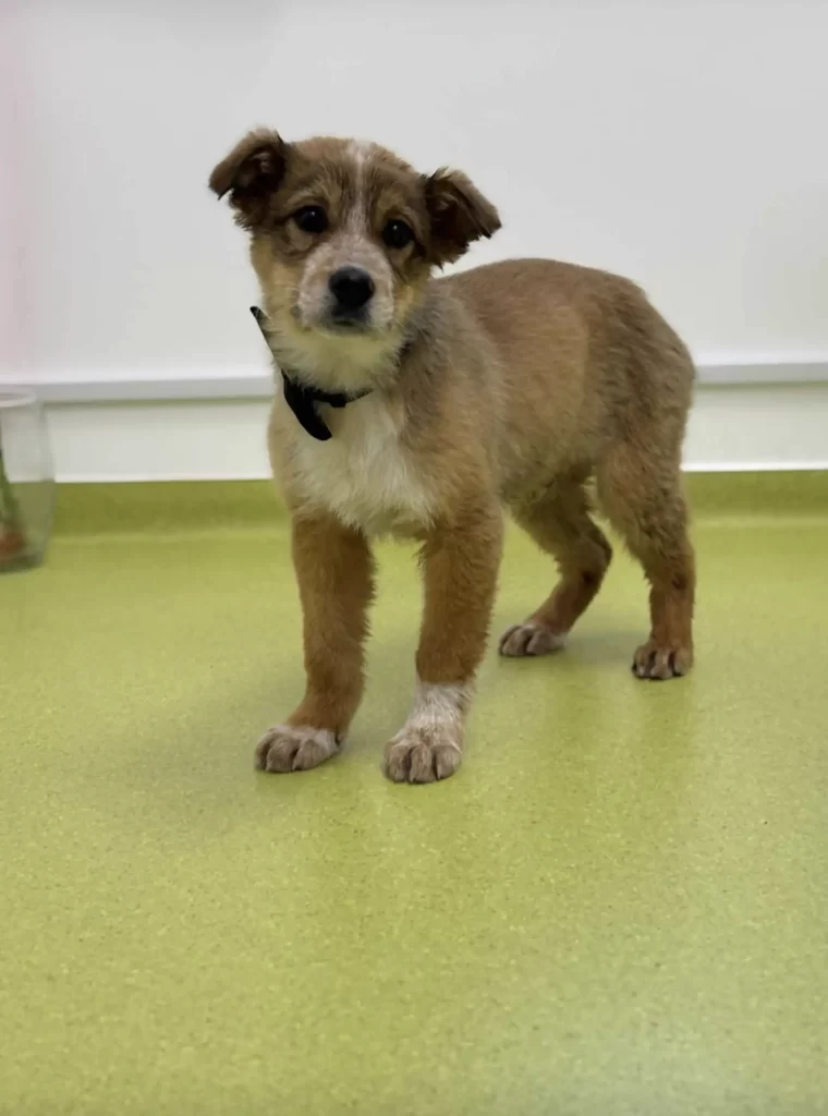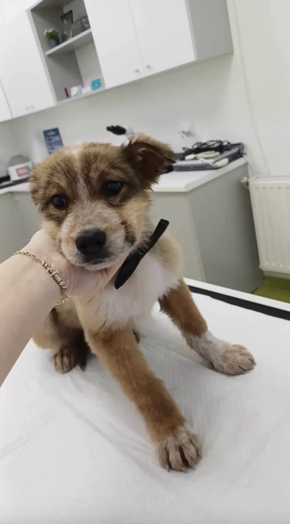 Though still frightened, the puppy began to relax in the warmth of the clinic. The team decided to call him Petrisor, a name that would mark the beginning of his new journey.