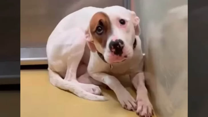 This two-year-old pup trembled uncontrollably, backing up to the wall in a desperate attempt to find comfort. Instead, all she was met with were jarring, high-pitched sounds from nearby kennels.