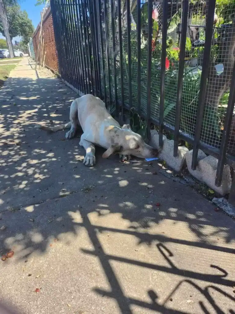 His tired paws scraped the hot pavement as he peeked into every yard like he was searching for something he had lost.