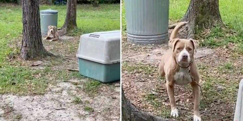 When April and her husband signed the papers for their new home, they expected surprises. But nothing could have prepared them for the heartbreak waiting in the yard — a gray-muzzled pit bull tied to a tree, quietly hoping her family might return.