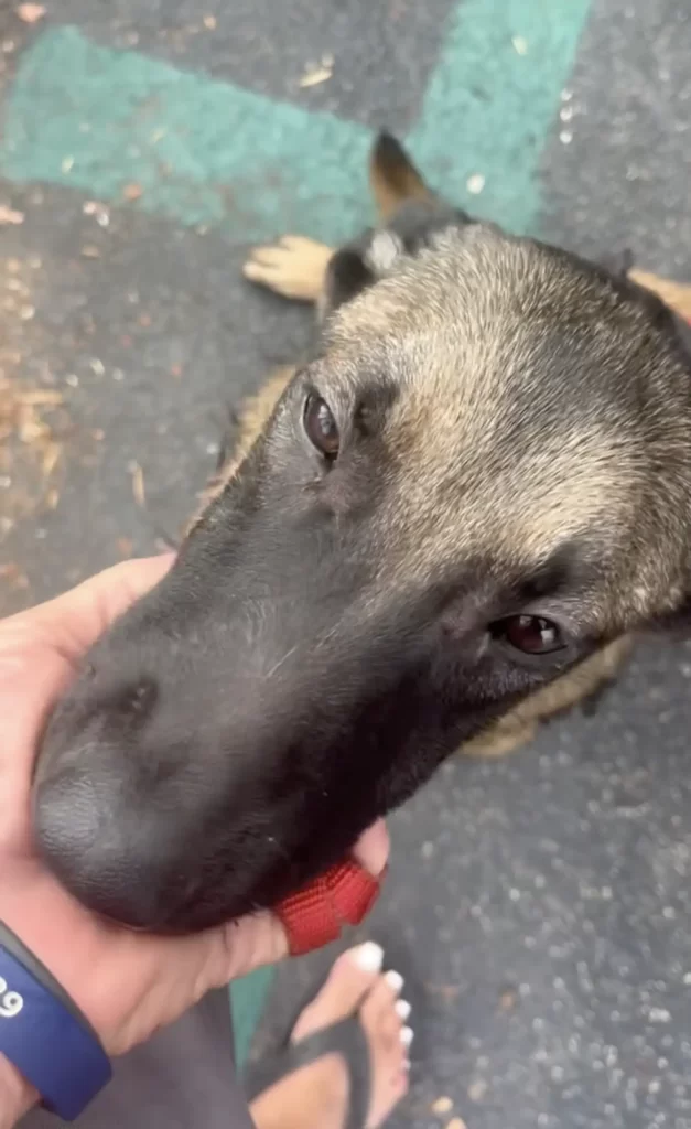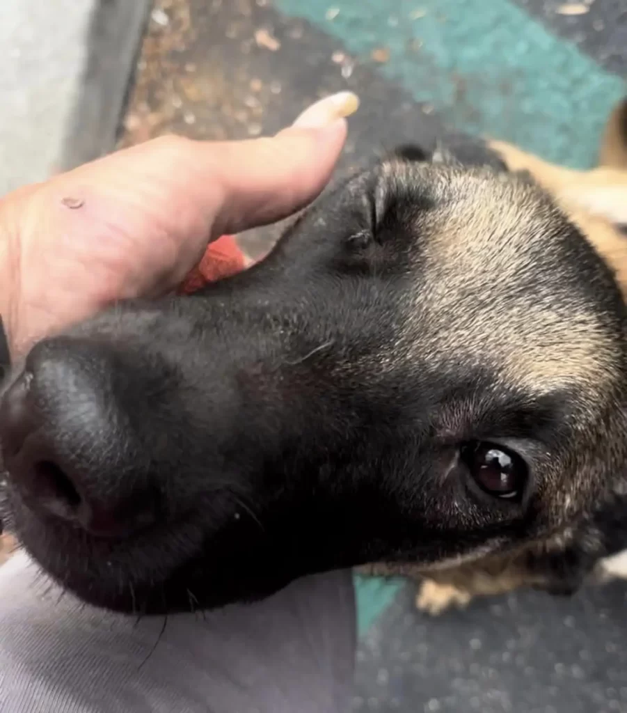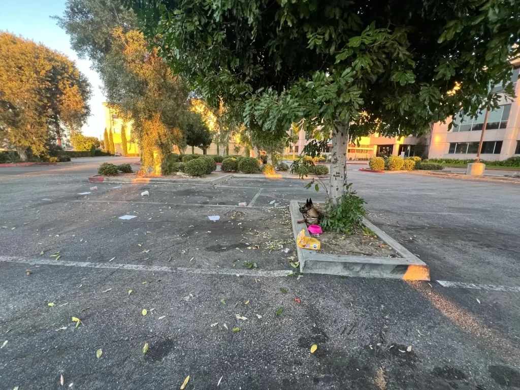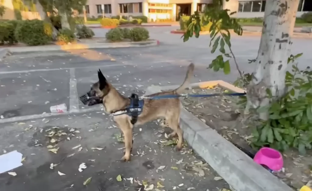In a quiet parking lot in Los Angeles, a heartbreaking scene quietly unfolded. A family stood beside their dog, tears falling as they tied her to a tree.
