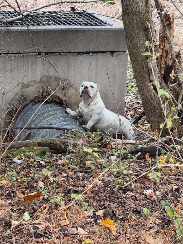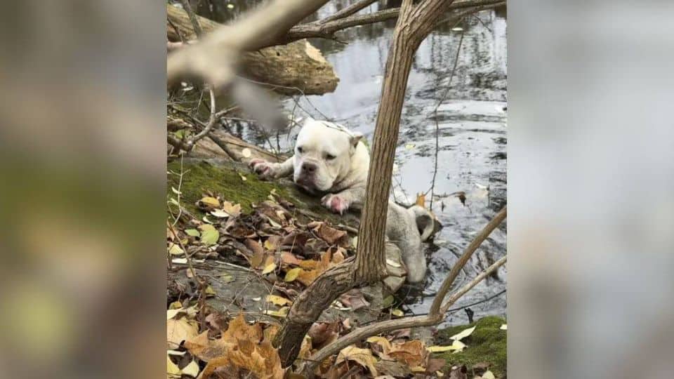 She spread it across the muddy ground near a small creek, hoping the frightened pup would feel safe enough to stop running.