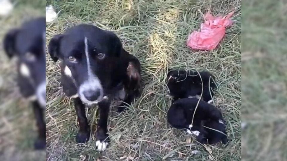 The pups beside her were barely moving, their tiny bodies trembling in the dirt.
