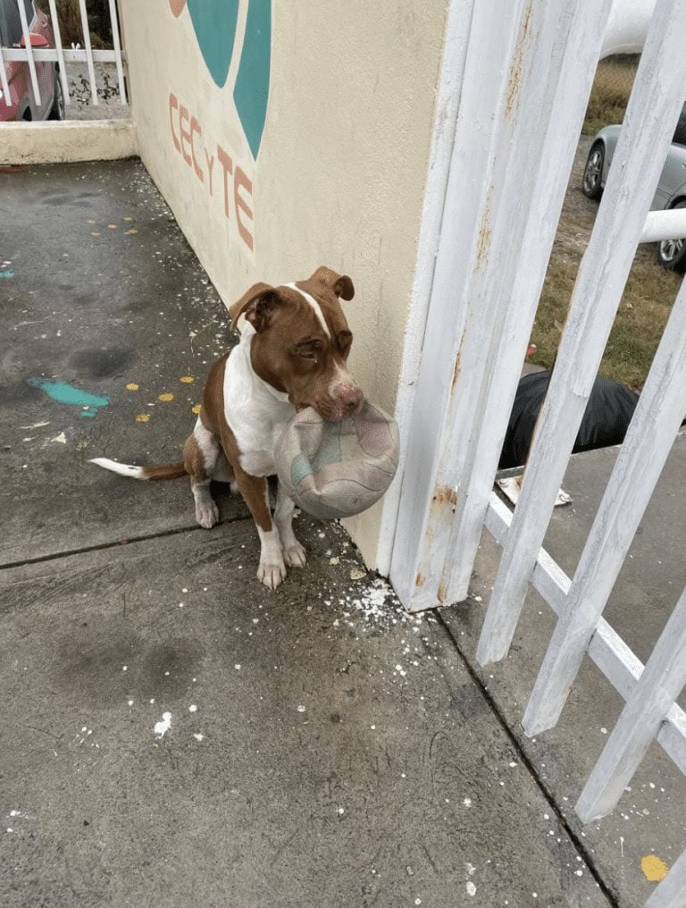 Clenched gently between his teeth was a ball of his own — worn down, deflated, and clearly well-loved. It was as if he had realized the problem he’d caused and wanted to make things right.