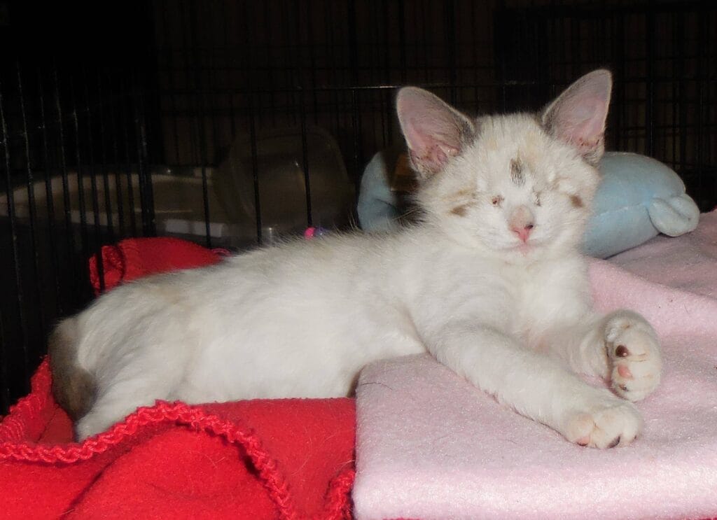 Barely a few weeks old and weighing just over a handful, Jovi arrived with both her eyes ruptured and no one knew why.