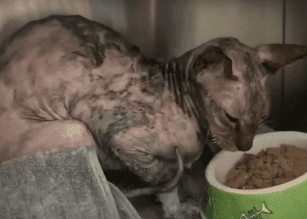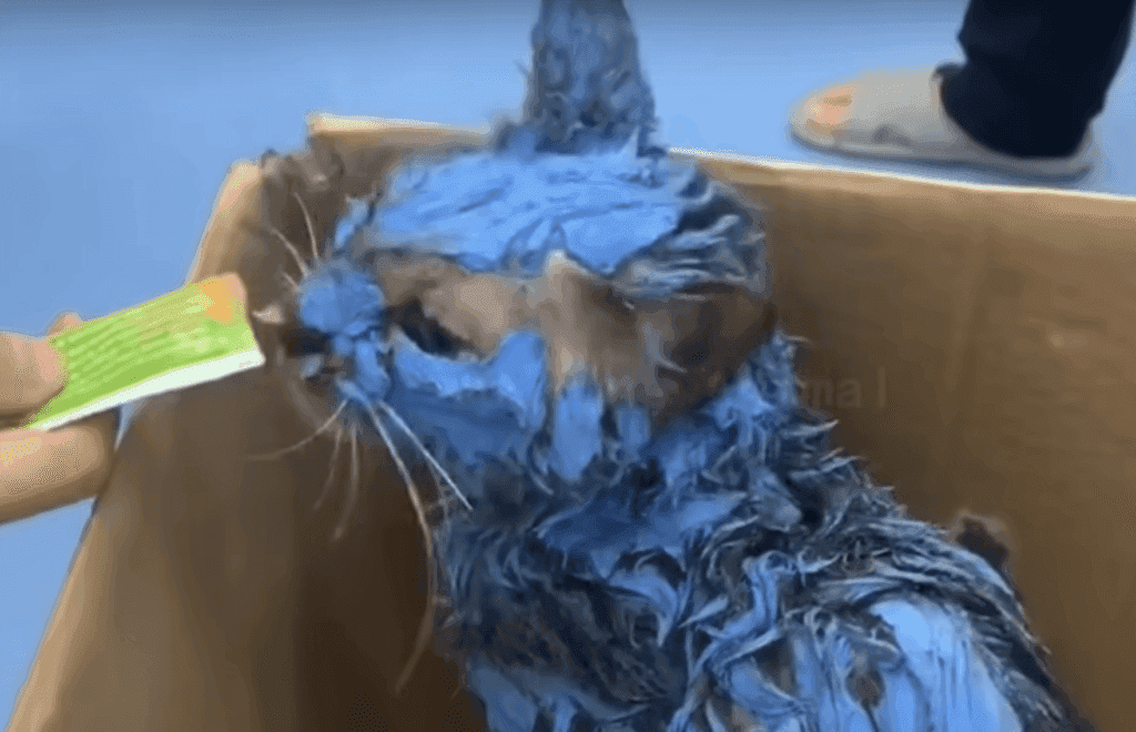 The hardened paint had not only trapped the cat’s fur, but it had also severely burned its skin.