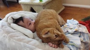If you have both a newborn and a cat, you might be concerned about how they will get along.