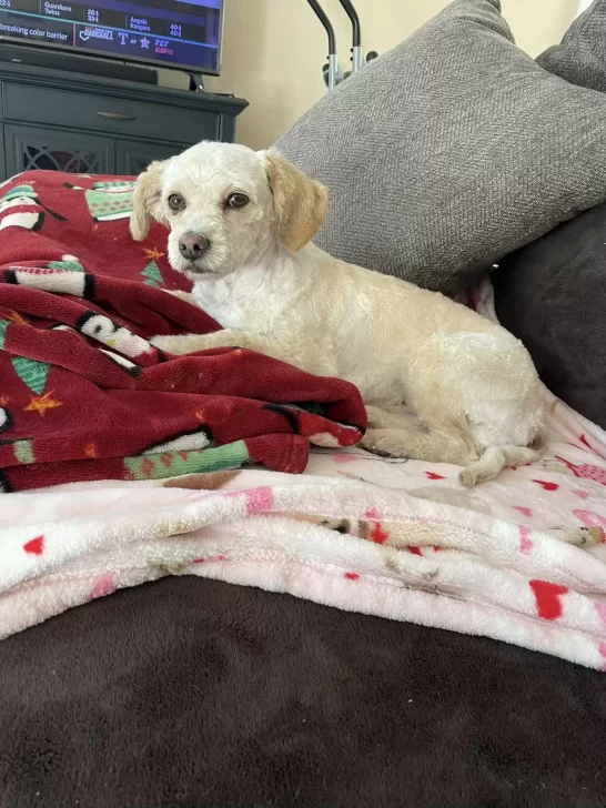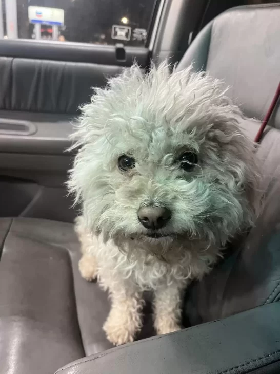 The dog, a bichon mix, had likely been left behind in a nearby park. As storms rolled through the area, she tried porch after porch looking for help. But no one came. So she sat quietly in the rain, shivering and alone.