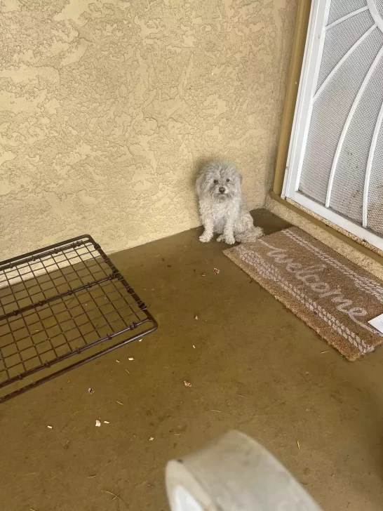 In the middle of a rainy week in Southern California, a small white dog was seen walking up to every doorstep in the neighborhood. Her tiny paw would reach out and lightly scratch on each front door — as if she believed someone inside might let her stay.
