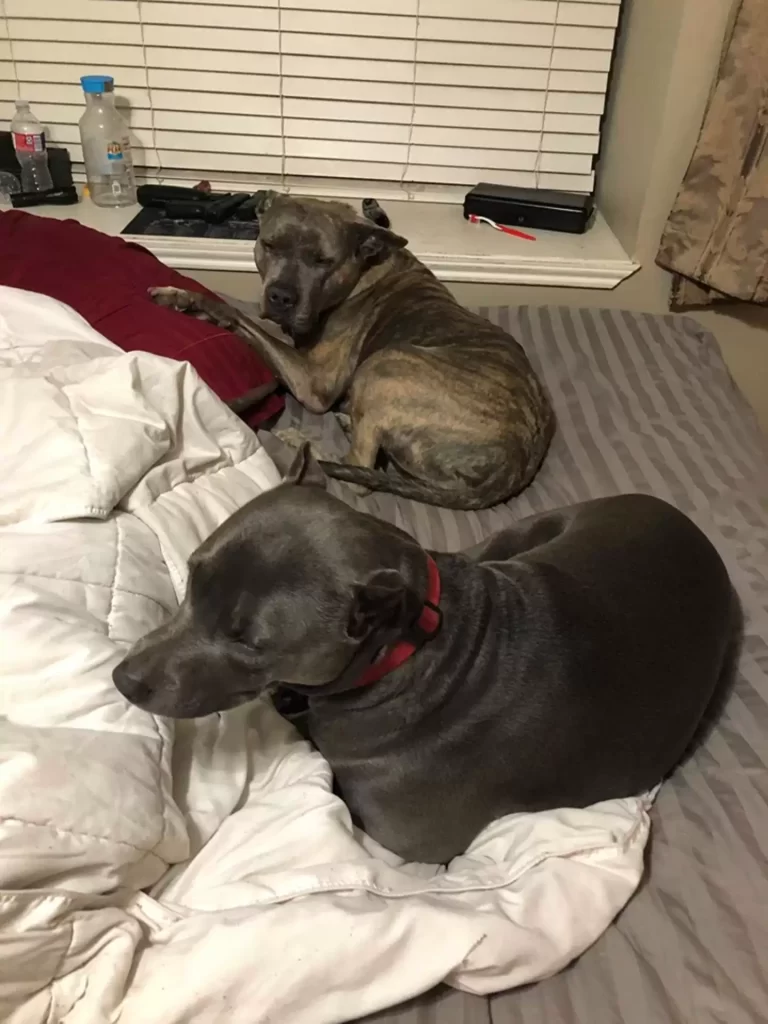 Startled, the men froze. They hadn’t expected two pit bulls standing their ground, their eyes blazing with loyalty. Within seconds, the would-be thieves turned and ran into the night, leaving everything behind.