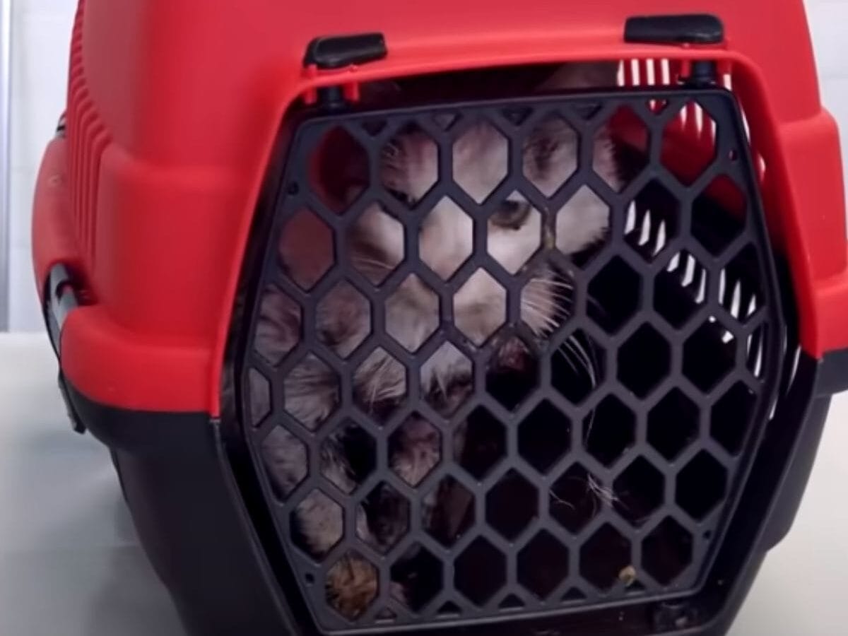 Hunger won over fear and finally, Mikey allowed himself to approach. With patience and care, they managed to safely get him into a cage.