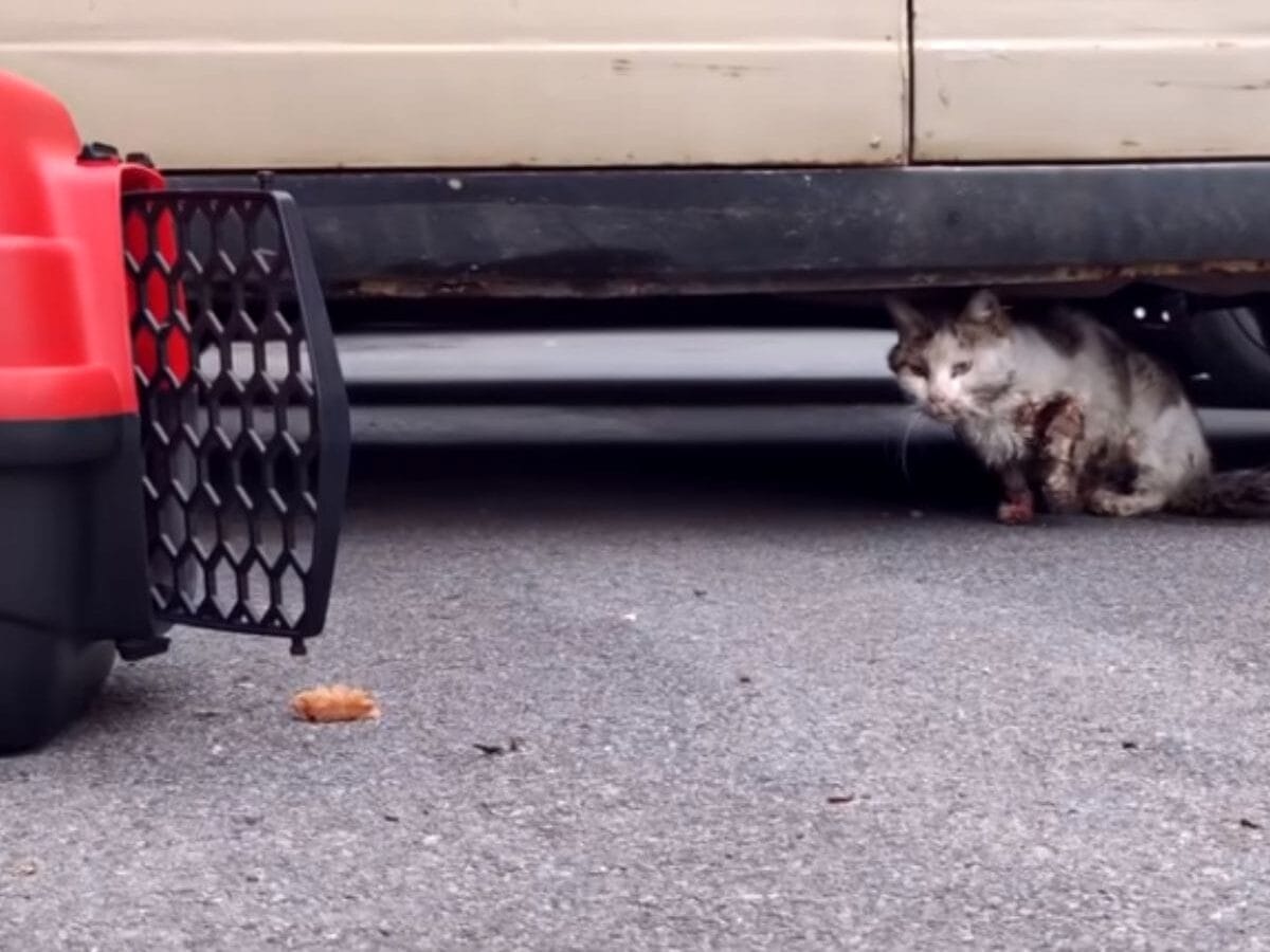 The poor cat had been hit by a car and left to suffer alone.