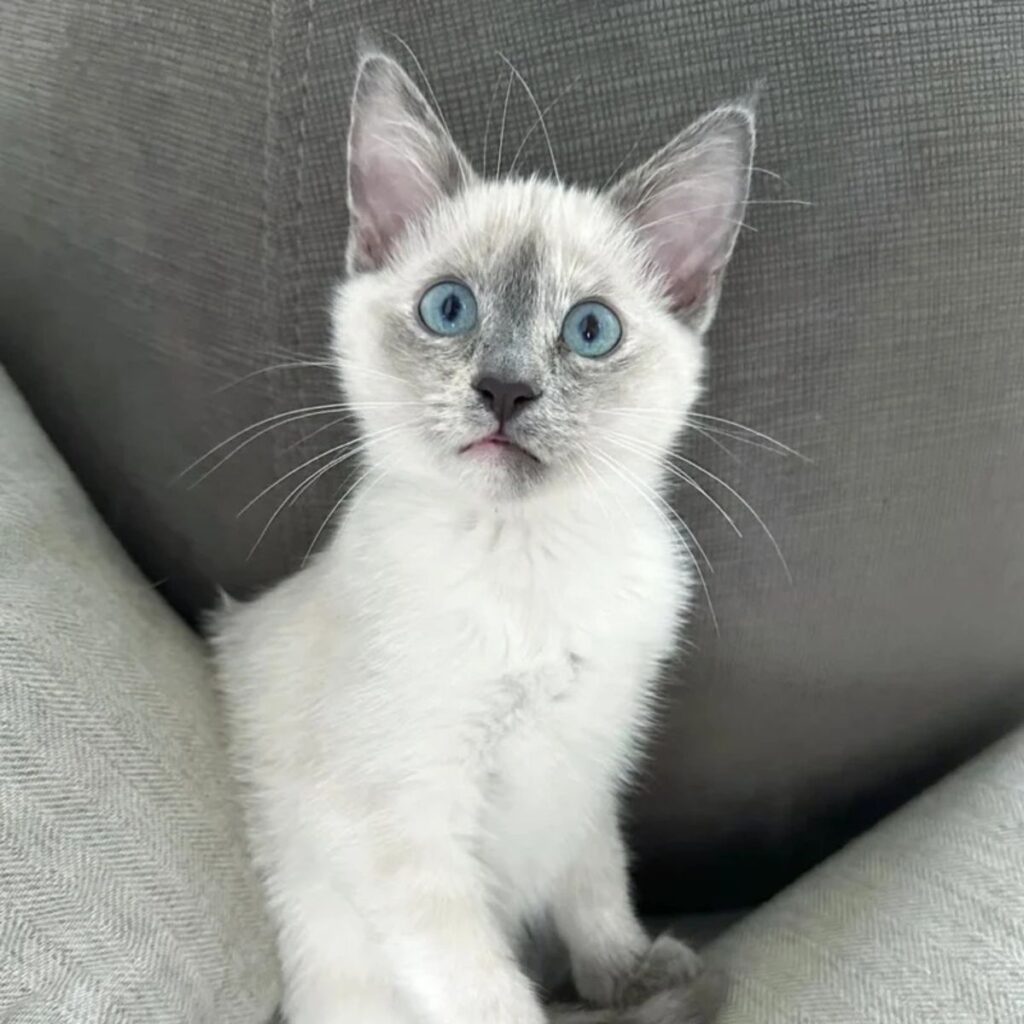For Lori, it was impossible not to laugh. “Lavender probably has the bluest eyes of any kitten I have seen,” she shared later. “She purrs at all times and is quite the hopper.”