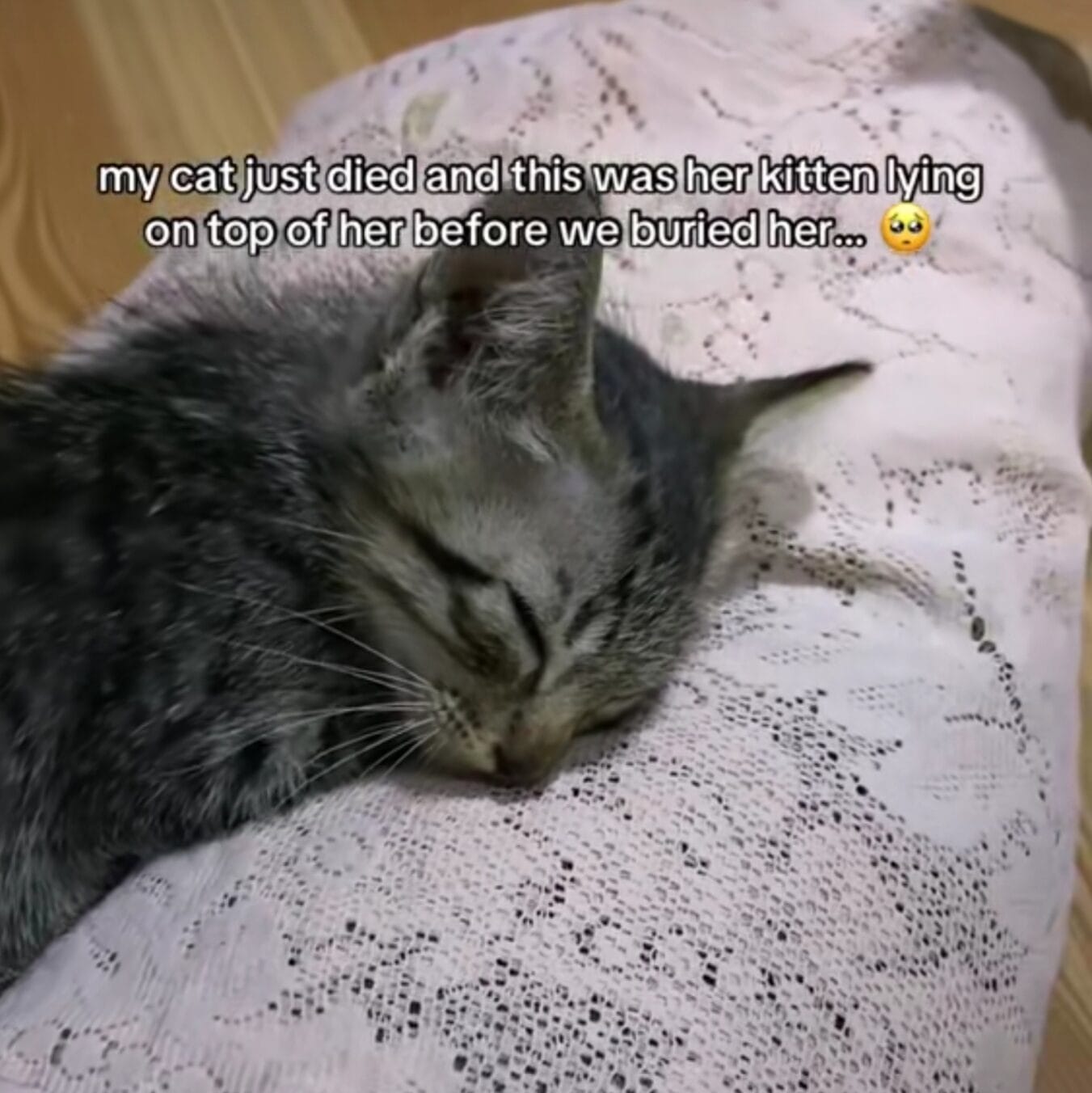 As one comment put it perfectly: “Love and grief don’t need words. You can see it in that kitten’s little body. She just wanted her mom back.”