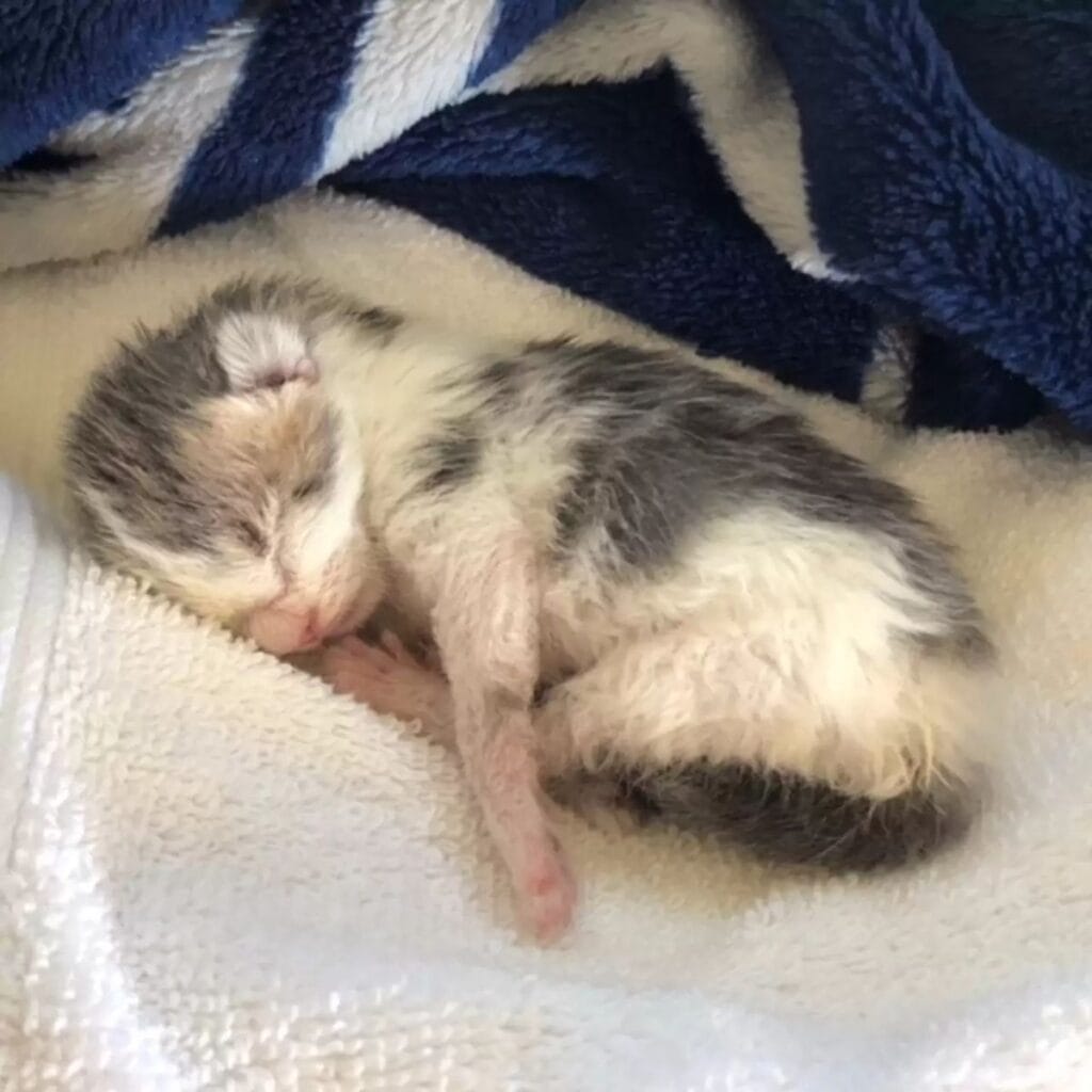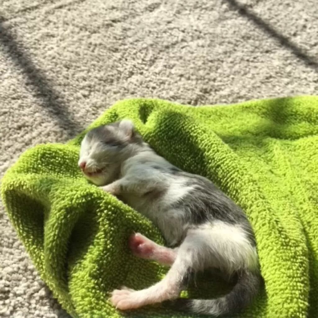 They followed the sound to the shed in their yard and found another kitten, this one even smaller, covered in dirt and lying motionless.