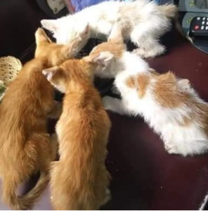 The kittens have been medically examined, given plenty of food and a warm, cozy place to relax. They were dehydrated, two of them were very malnourished and needed extra care around the clock.