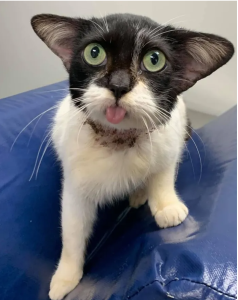 According to Shelby Beers, a veterinary technician, the cat lacks incisors, which means it often sticks out its tongue, which only adds to its charm.