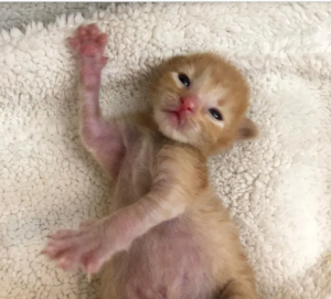 The San Jose Animal Care Center veterinary clinic received a newborn kitten that had been found abandoned and without a mother.