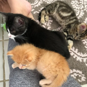 “I suspected that the older kittens would be too harsh on him. However, I was surprised by their friendliness. They accepted him,” Laura says.