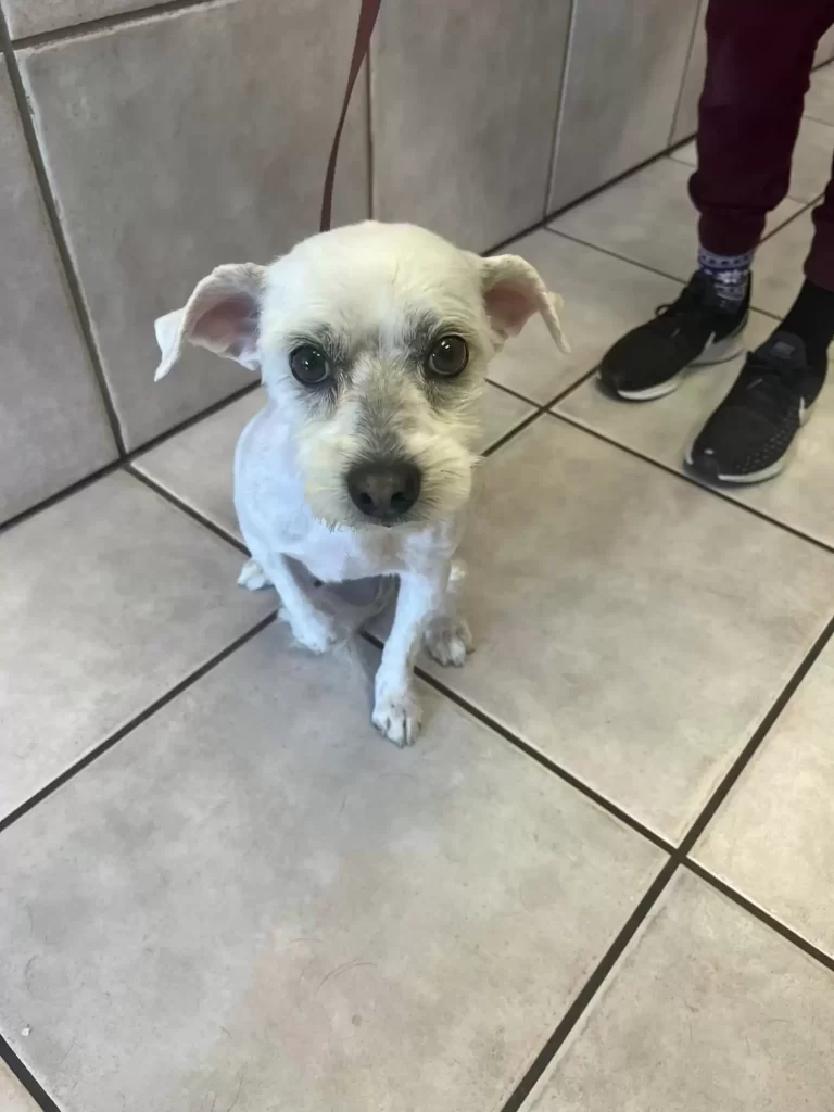 The frightened, scruffy pup they had met earlier now looked like a completely different dog — bright-eyed, clean, and ready to go home.
