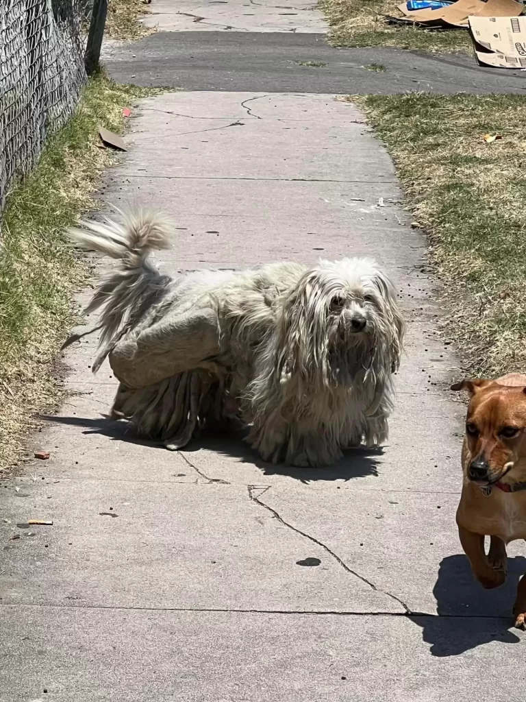 The little dog’s coat was so overgrown it looked like a blanket of old wool wrapped tightly around him. The driver quickly pulled over, offered water, and made a call to Logan’s Legacy Rescue — the local nonprofit known for stepping in when animals have no one else.
